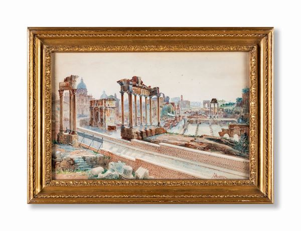 Veduta generale del foro romano col tempio della Concordia