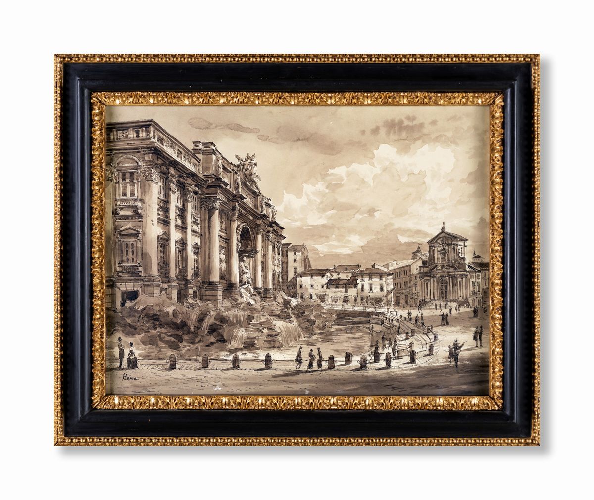 Veduta di Piazza di Trevi con la fontana e la Chiesa dei Santi Vincenzo e Anastasio