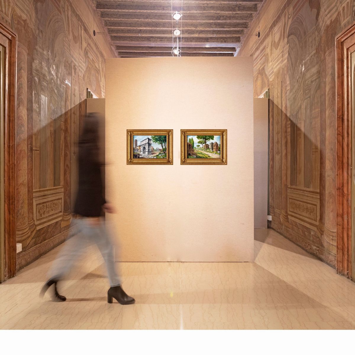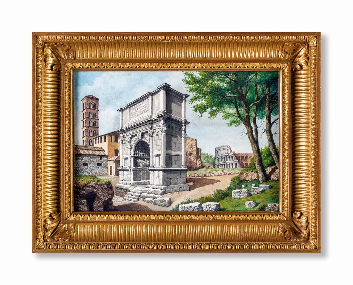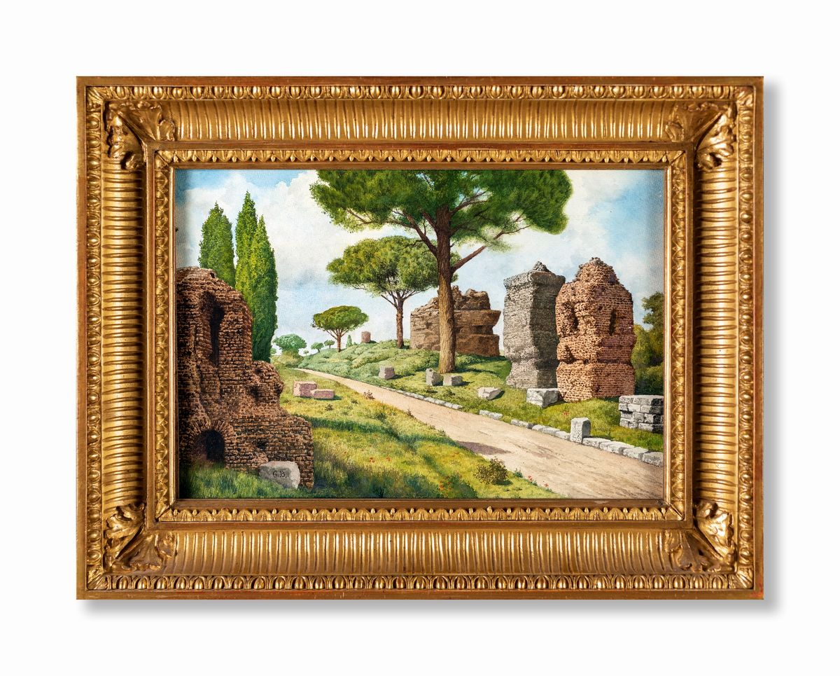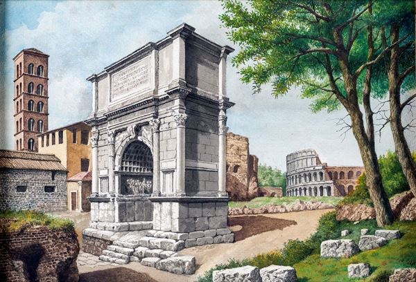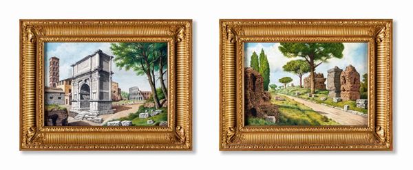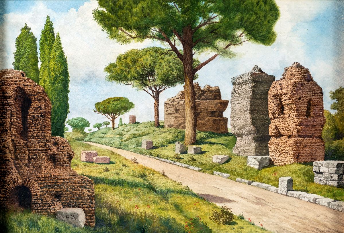 a) L'arco di Tito e il Colosseo b) Ruderi sulla via Appia