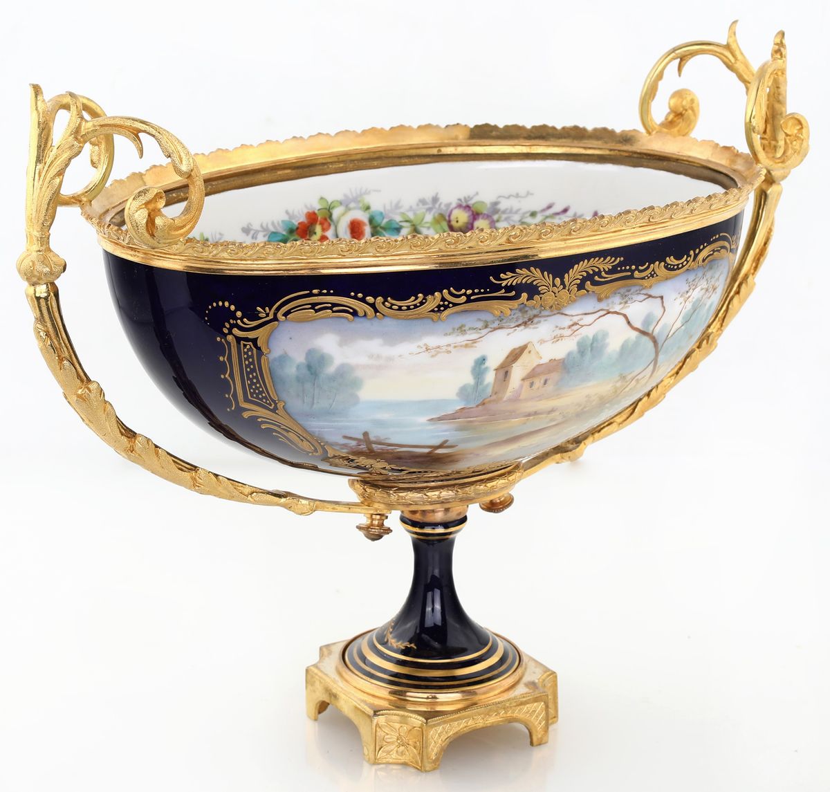 Centrotavola in porcellana blu e bronzo dorato, Sevres, XIX secolo