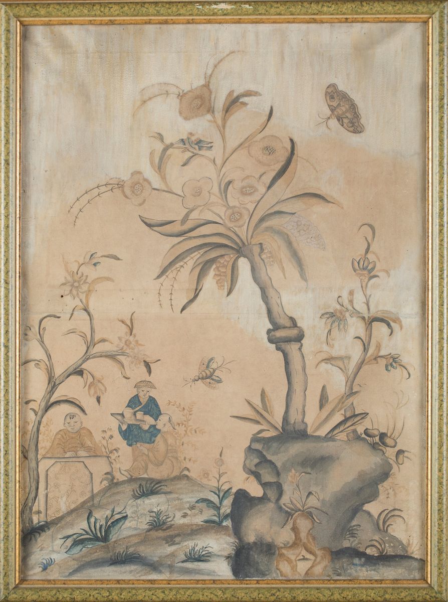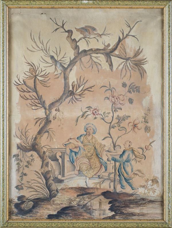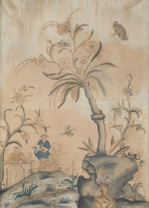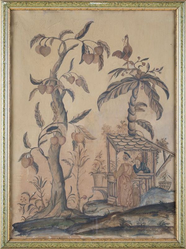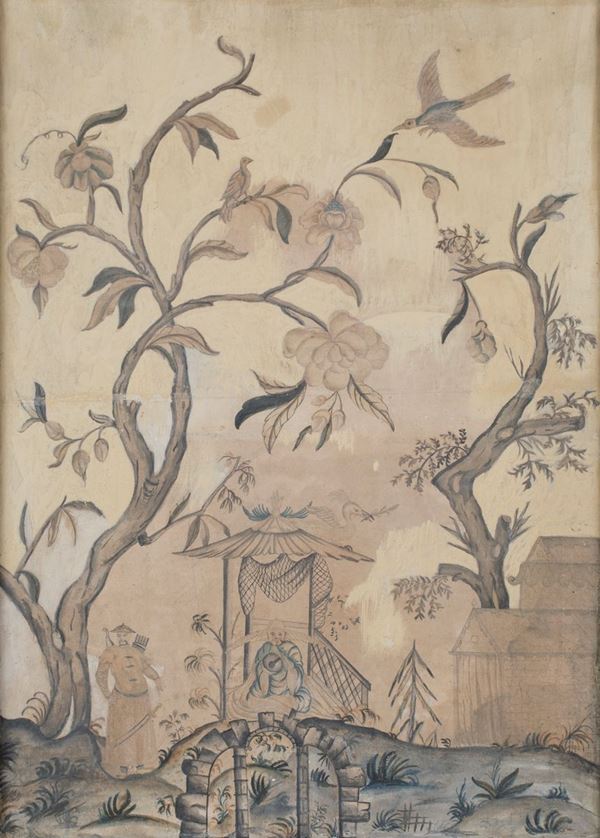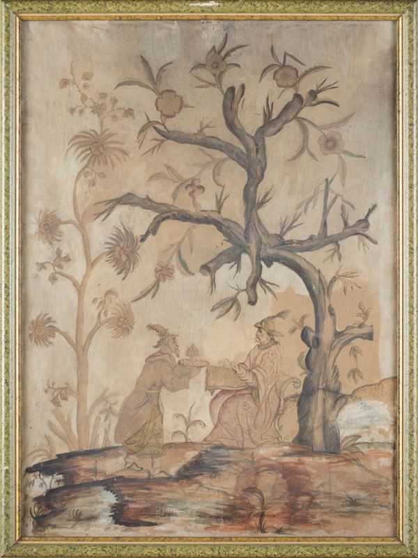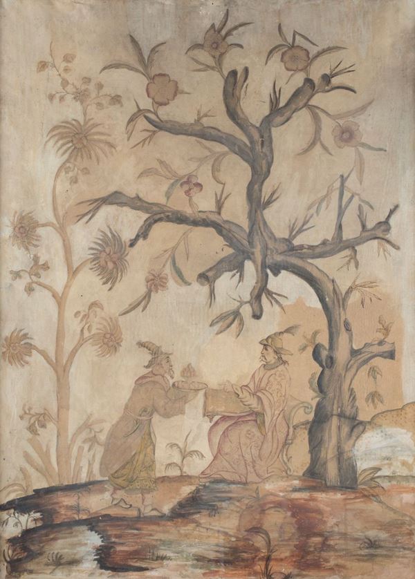 decorati ognuno con scene di genere animate da personaggi ambientati in paesaggi minimi con vegetazione