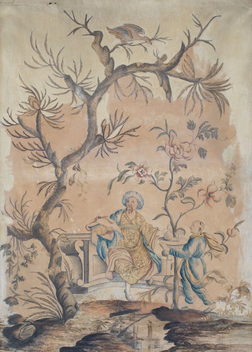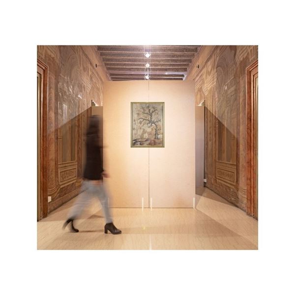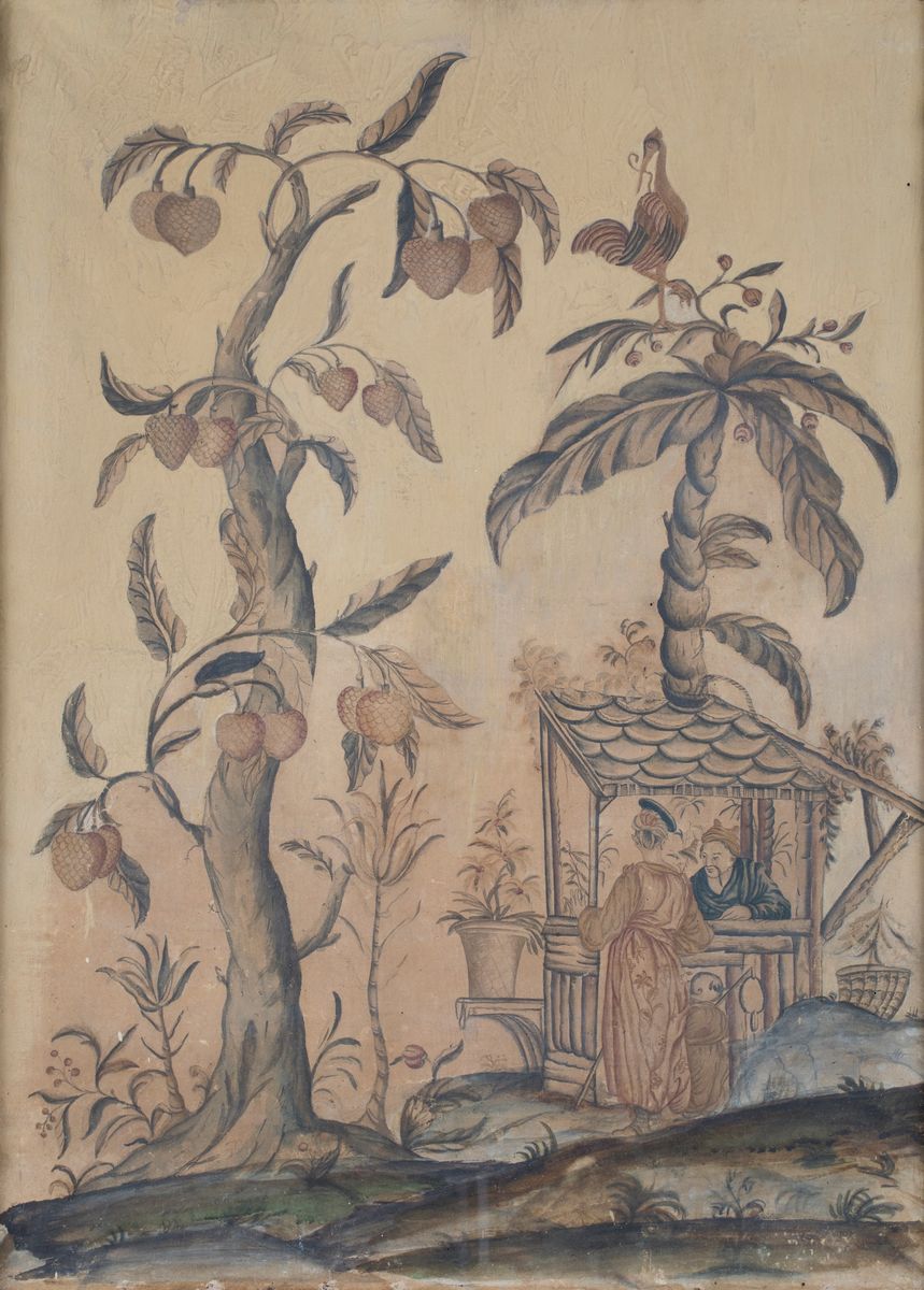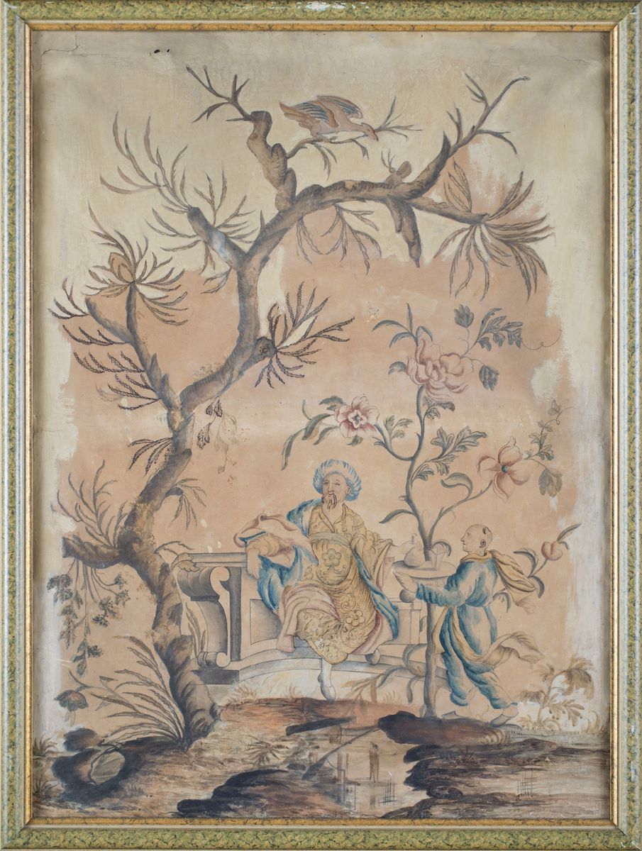 decorati ognuno con scene di genere animate da personaggi ambientati in paesaggi minimi con vegetazione