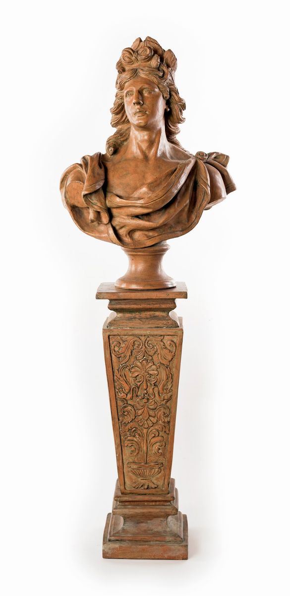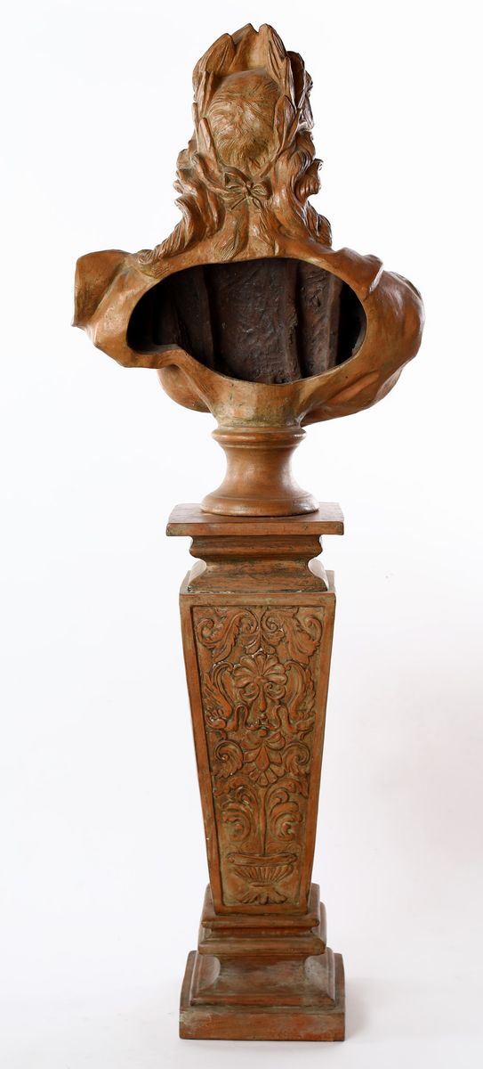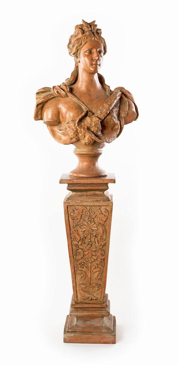 Coppia di busti in terracotta con piedistallo, XIX secolo