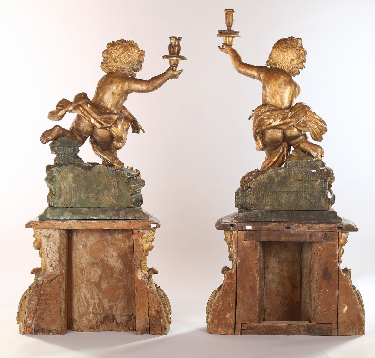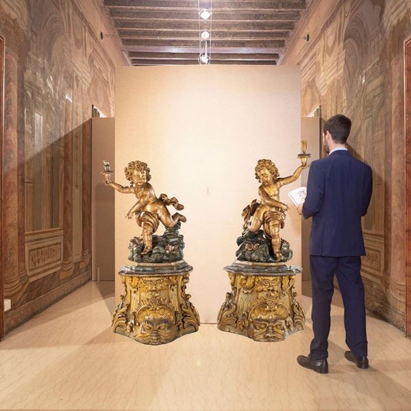 Coppia di putti in legno dorato, Genova, fine XVII/inizio XVIII secolo