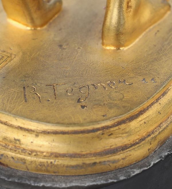 Base ovale in marmo. Firmata sulla base R. Tégner e bollo di fonderia La Stele