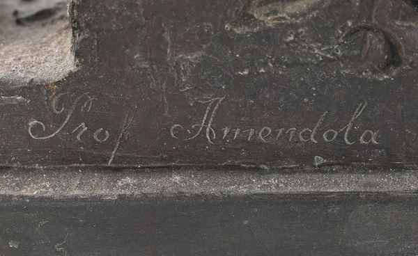 Firmato al verso, lungo il profilo della base: Prof. Amendola