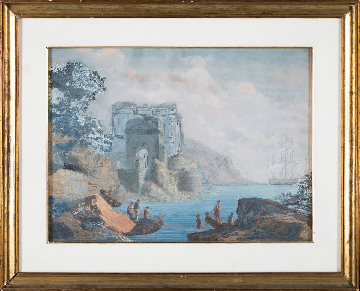 Marina con ruderi e figure