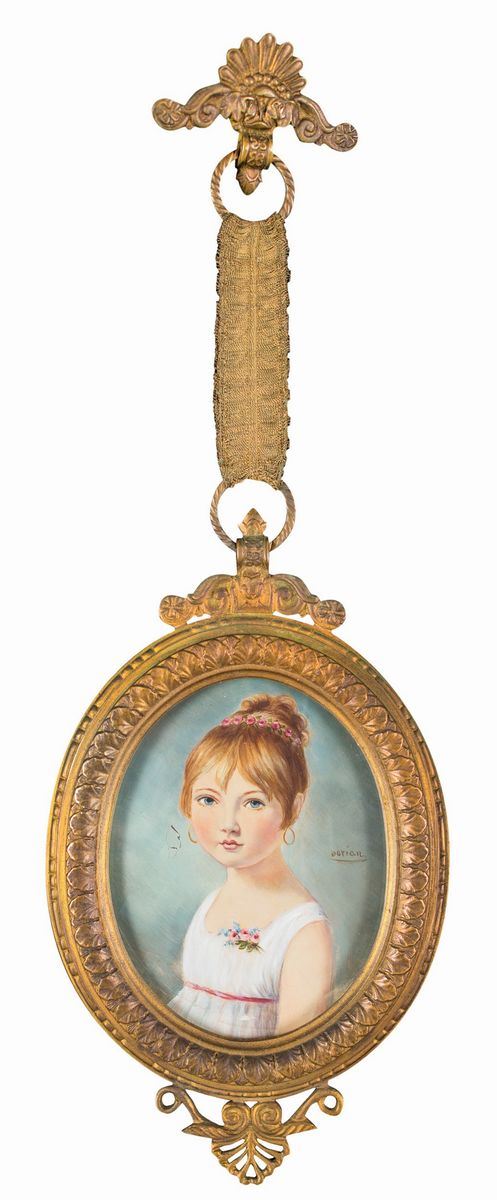 Firmata a destra, al centro: Dorian. La miniatura è racchiusa in un antico medaglione pendente in ottone