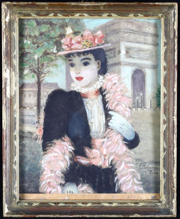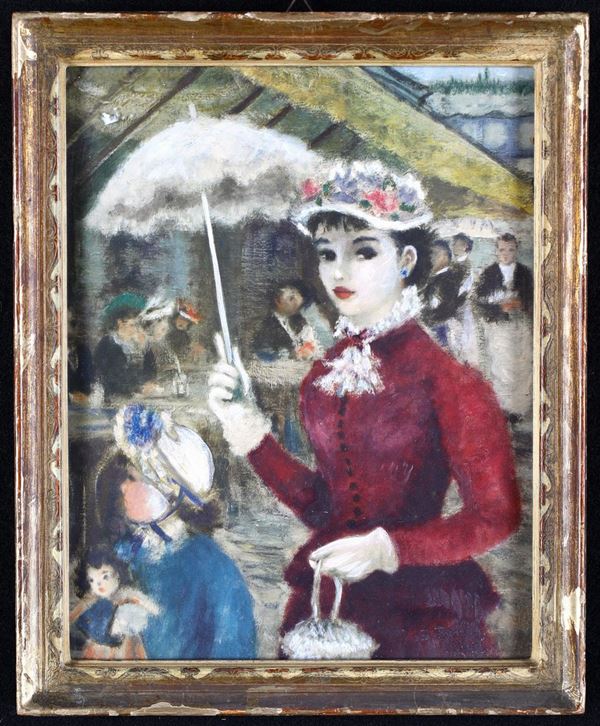 a) Ritratto femminile con boa di struzzo b) Donna con ombrellino