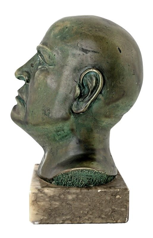 gesso decorato ad imitazione del bronzo a patina verde su base squadrata in marmo. Reca iscritto G.Carusi.