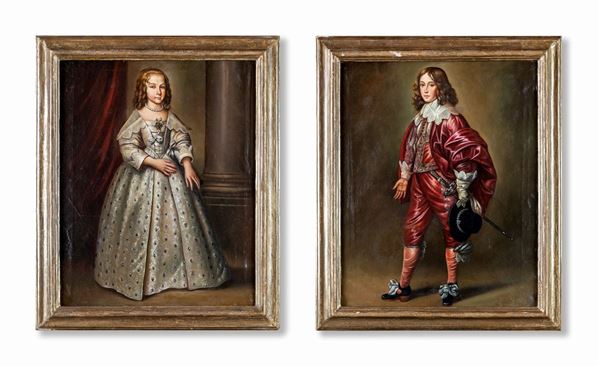 a) Ritratto di giovinetta b) Ritratto di giovane cavaliere in abito rosso