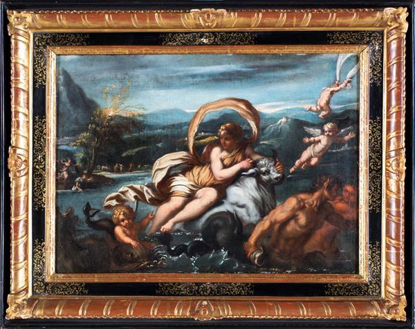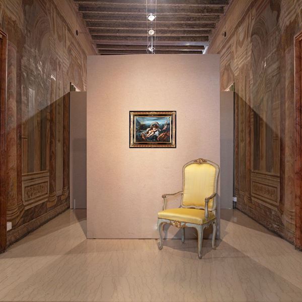 L'attribuzione ad Antonio Carracci (nipote di Annibale) si deve al prof. Massimo Pirondini il quale ritiene che il dipinto che qui presentiamo sia stato eseguito dal giovane Antonio verso la metà del primo decennio del Seicento dopo aver visto l'analoga opera di Annibale nel palazzo romano del cardinale Odoardo Farnese e ne abbia tratto questa versione leggermente ridotta sui quattro lati.