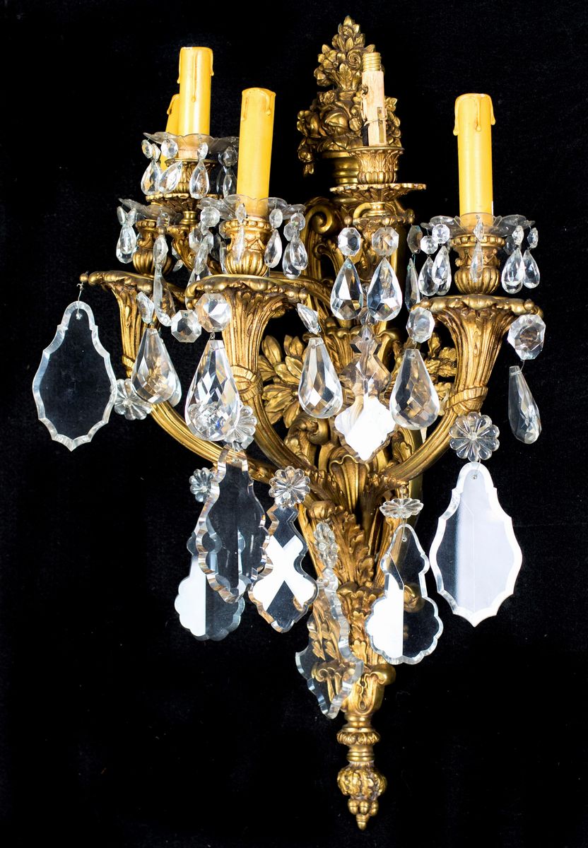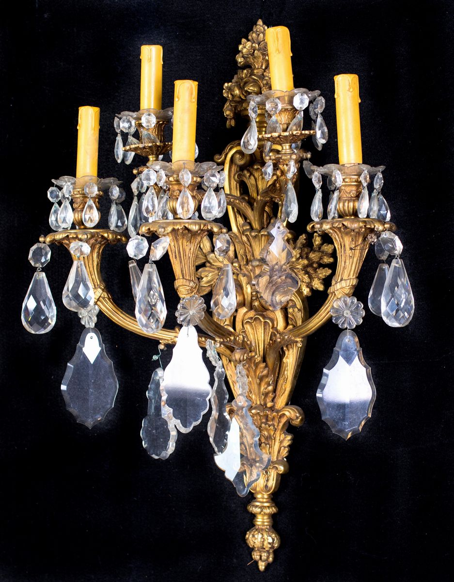 Coppia di appliques in bronzo dorato a cinque luci, XIX secolo