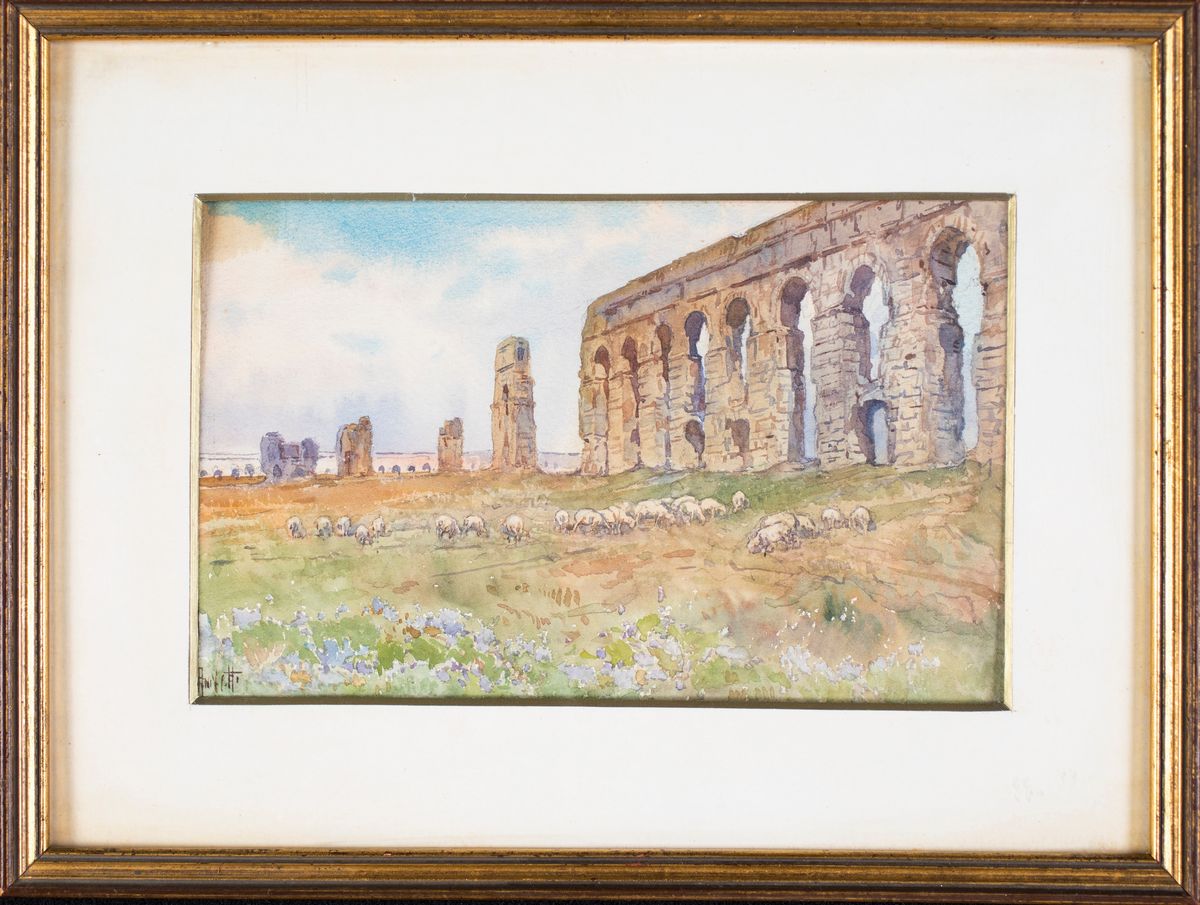 Campagna romana con gregge e i resti dell'acquedotto Claudio