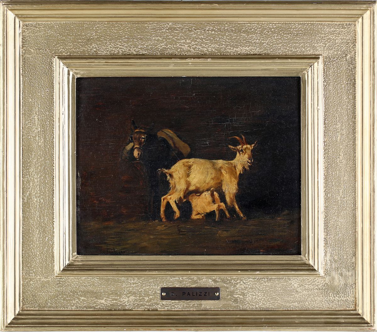 Firmato in basso a sinistra: G. Palizzi. AL verso etichetta della Galleria d'arte il Ducato di Egidio Eleuteri a Roma, esposto alla mostra "Una proposta per l'800 italiano" n. 6