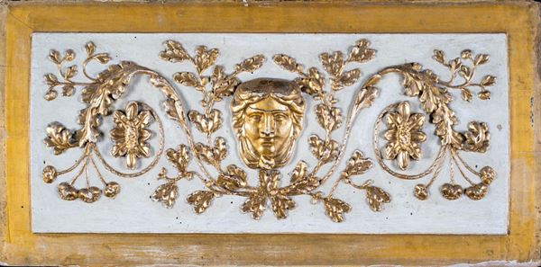 Pannello in legno intagliato, laccato e dorato, inizio del XIX secolo