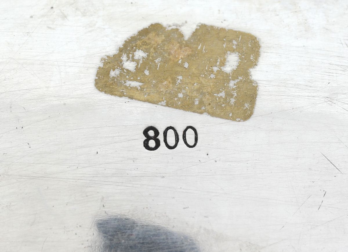 di forma ovale decorato da volute e motivi vegetali sbalzati ed incisi che si susseguono lungo un'ampia bordura