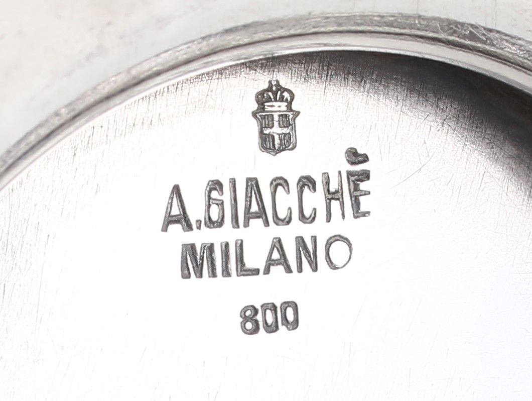Servizio in argento composto da tre pezzi, Antonio Giacché, Milano, prima metà del XX secolo