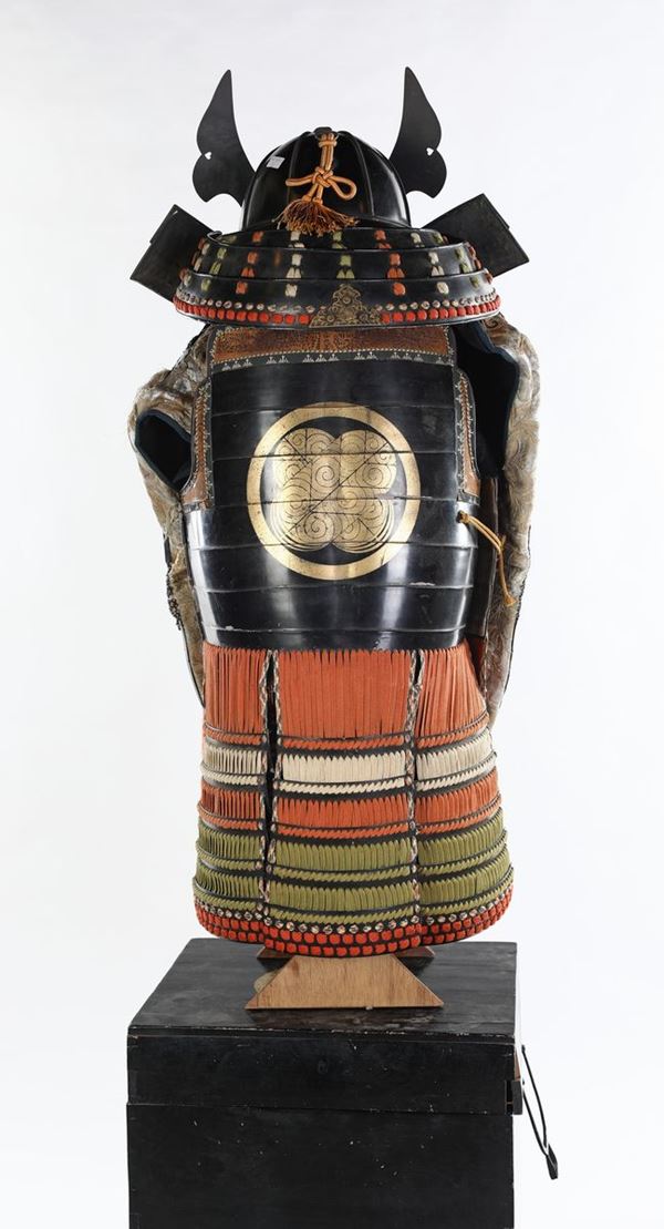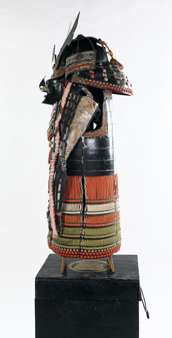 Antica armatura da samurai Yoroi con elmo, Giappone, primo periodo Showa (1926 - 1989)