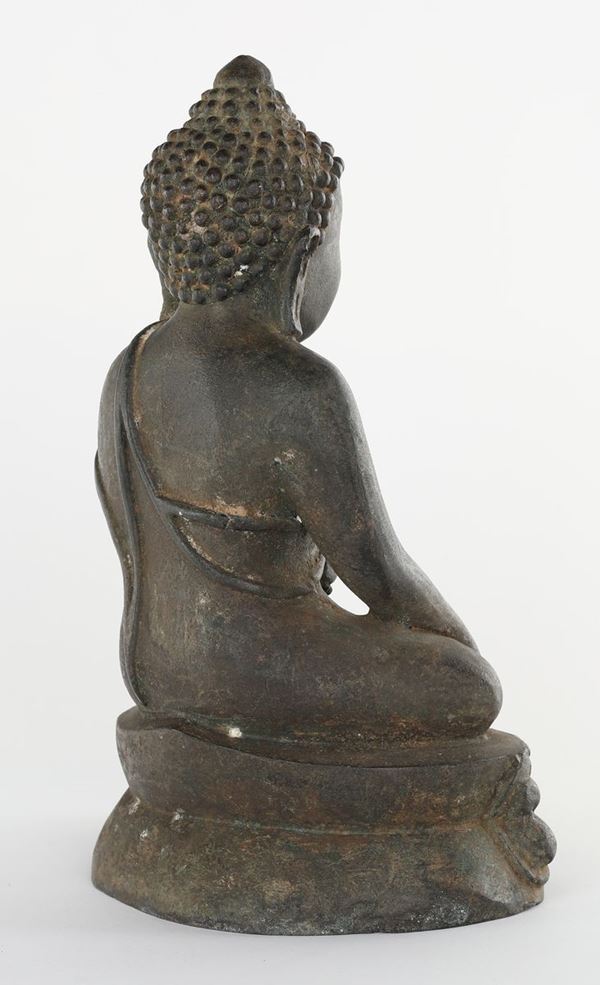 Buddha Bhumisparsha in metallo ferroso, Cina, dinastia Qing, metà del XIX secolo