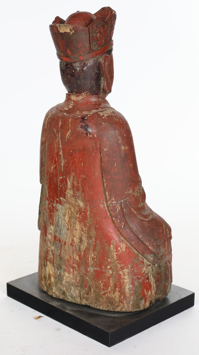 Buddha Dhyanamudra in legno laccato rosso con tracce di doratura, Cina, XIX secolo