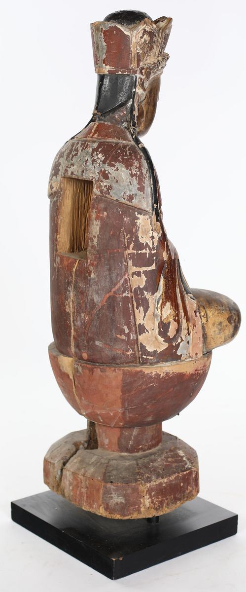 Grande Guanyin Avalokitesvara in legno policromo con tracce di doratura, Cina, dinastia Qing, XIX secolo