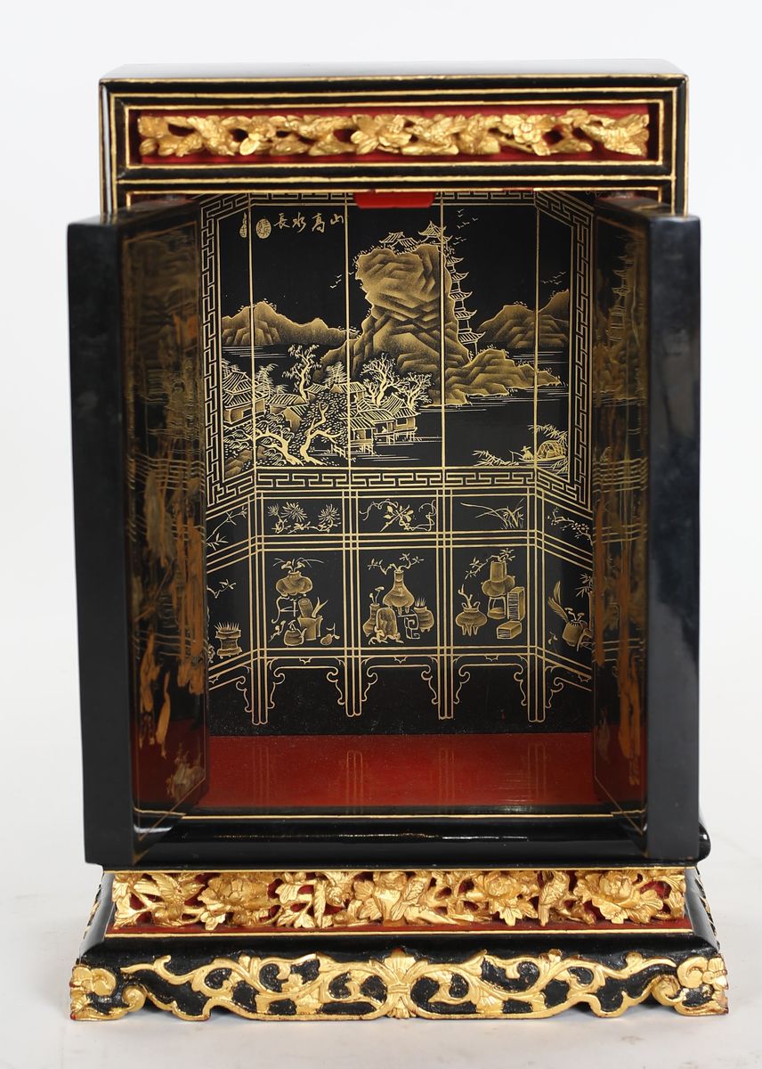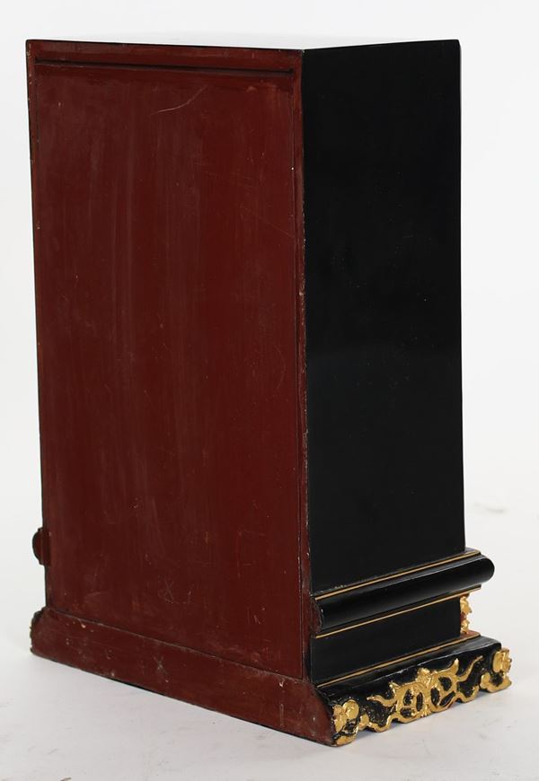 Piccolo altare da viaggio in legno laccato e dorato, Cina, XX secolo
