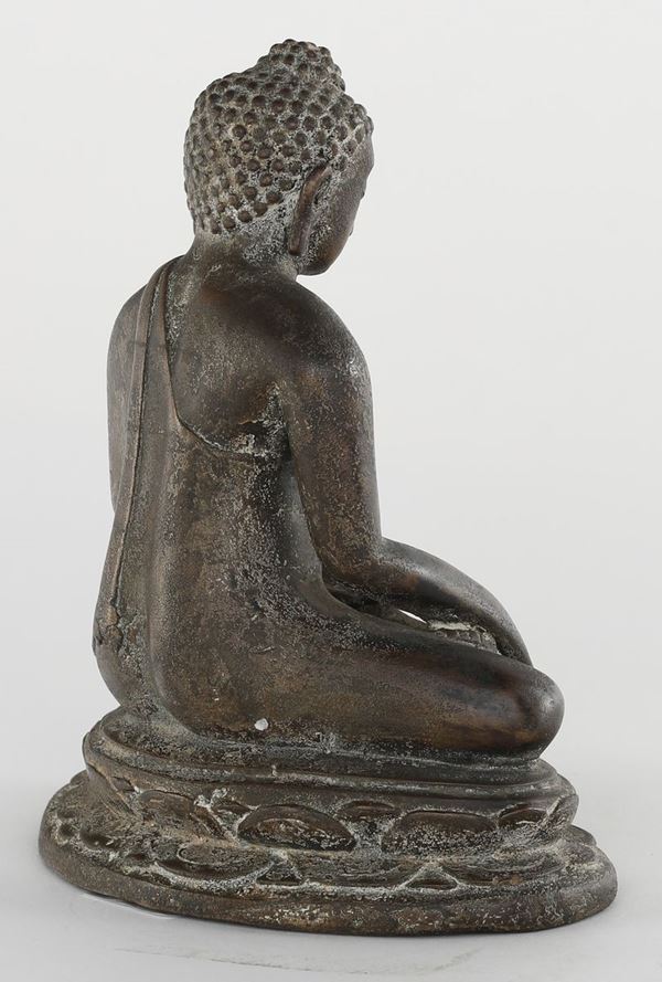 Piccolo Buddha Bhumisparsha in bronzo a fusione piena, post Pagan, Birmania, XVII secolo