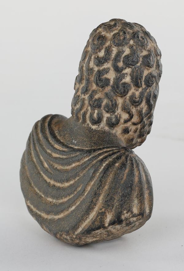 Piccolo busto maschile in scisto nero, area storica del Gandhara, III-IV secolo