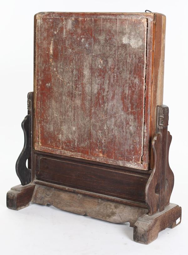 Schermo in legno intagliato, laccato rosso e dorato, Cina, dinastia Qing, seconda metà del XIX secolo