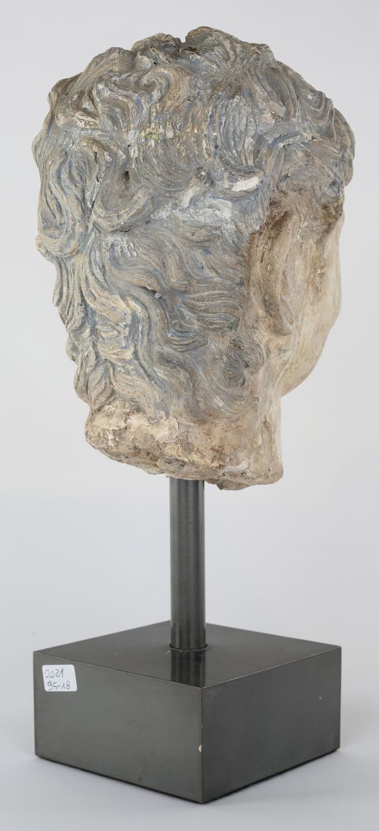 Testa di giovane in stucco policromo, area storica del Gandhara, III-IV secolo