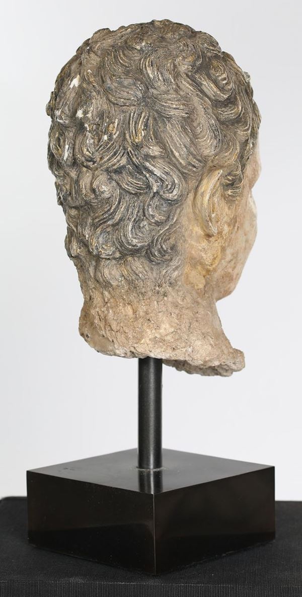Testa di giovane in stucco policromo, area storica del Gandhara, II-III secolo