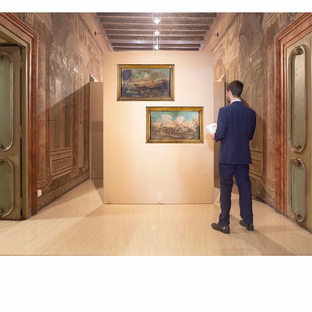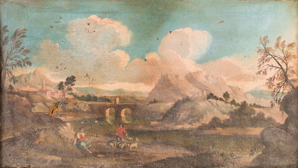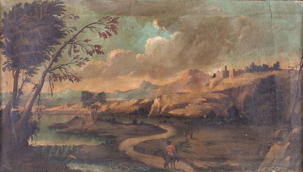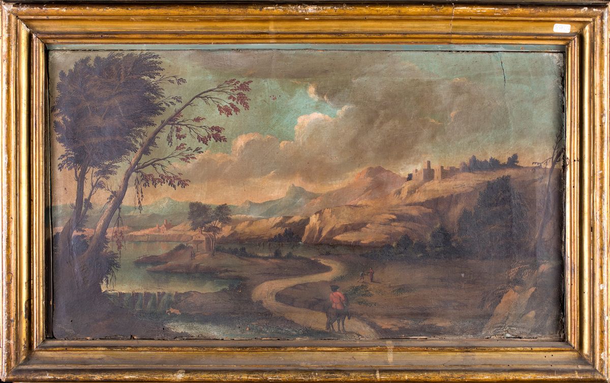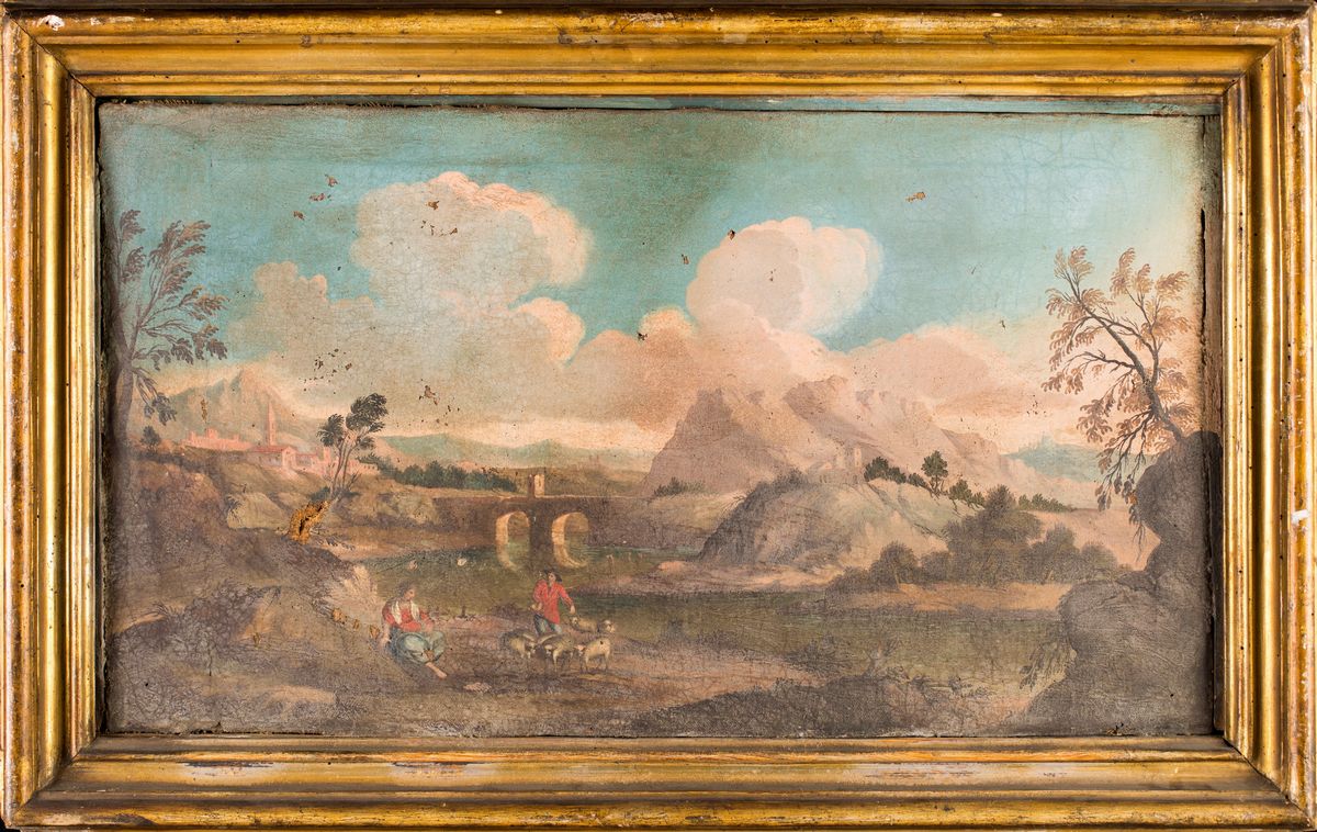 a) Paesaggio con viandante b) Paesaggio bucolico con figure