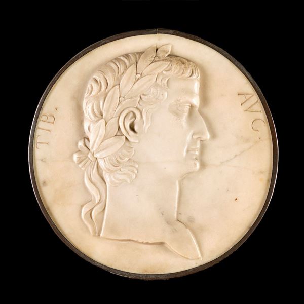 rispettivamente in alabastro e in scagliola, con profili di Claudio Cesare e Tiberio Augusto