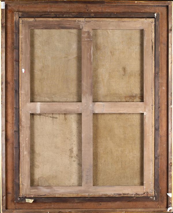 Cornice modanata in legno dorato a due ordini di intaglio.