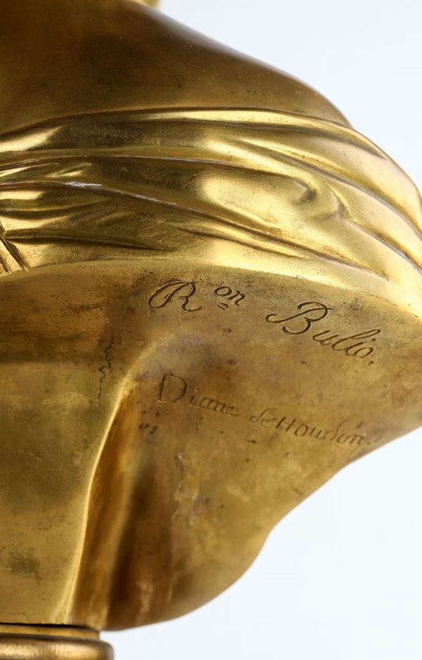 Busto in bronzo dorato di Diana cacciatrice da Jean Antoine Houdon, fine del XIX secolo