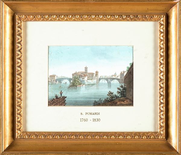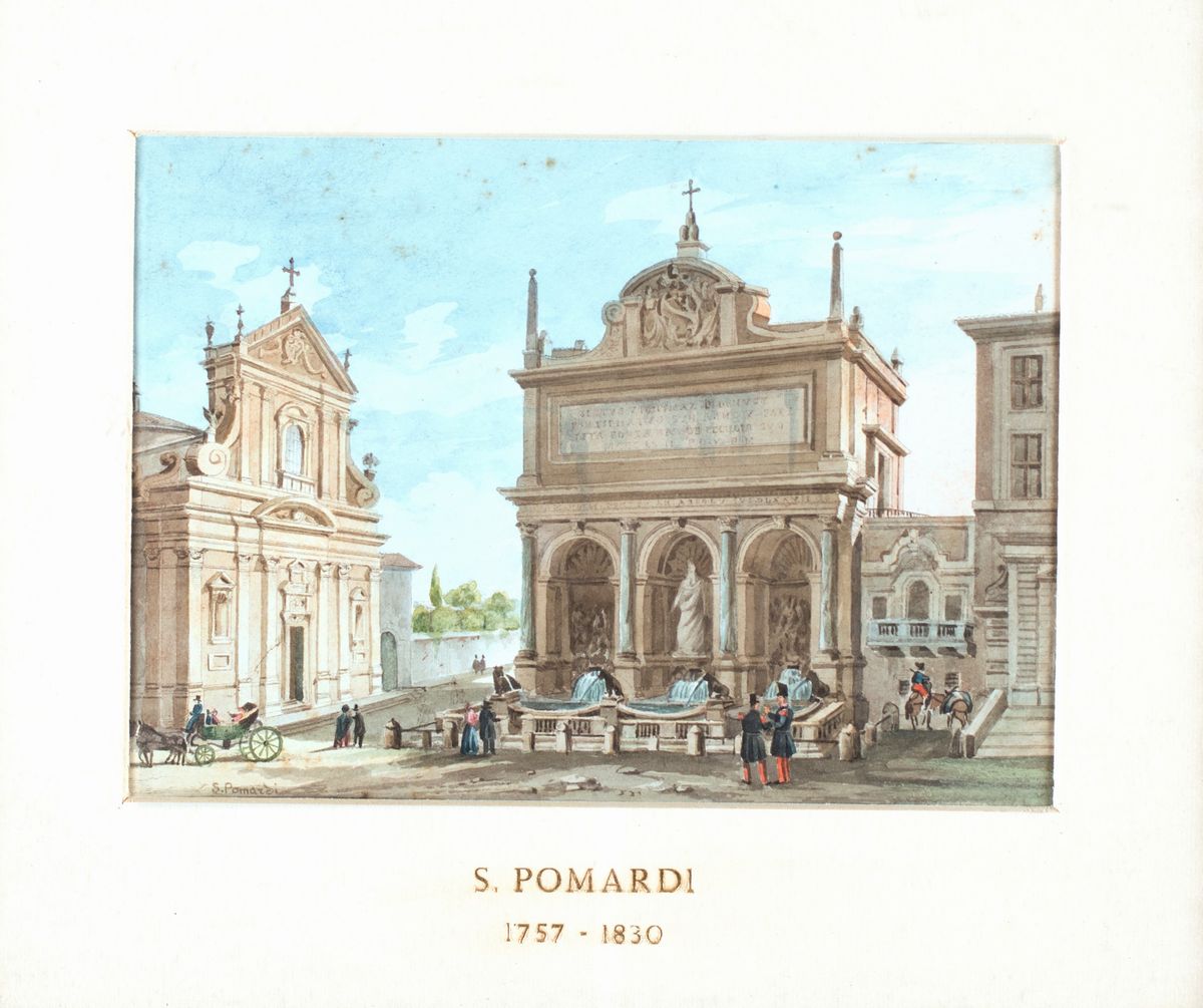a) L'Isola Tiberina e i ponti Cestio e Fabricio b) La fontana del Mosè (o dell'Acqua Felice) e la Chiesa di Santa Maria della Vittoria