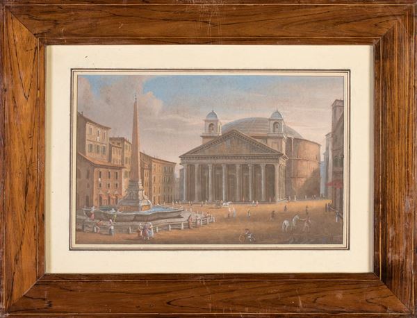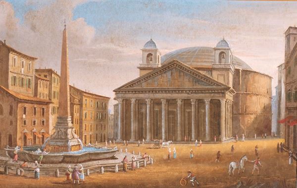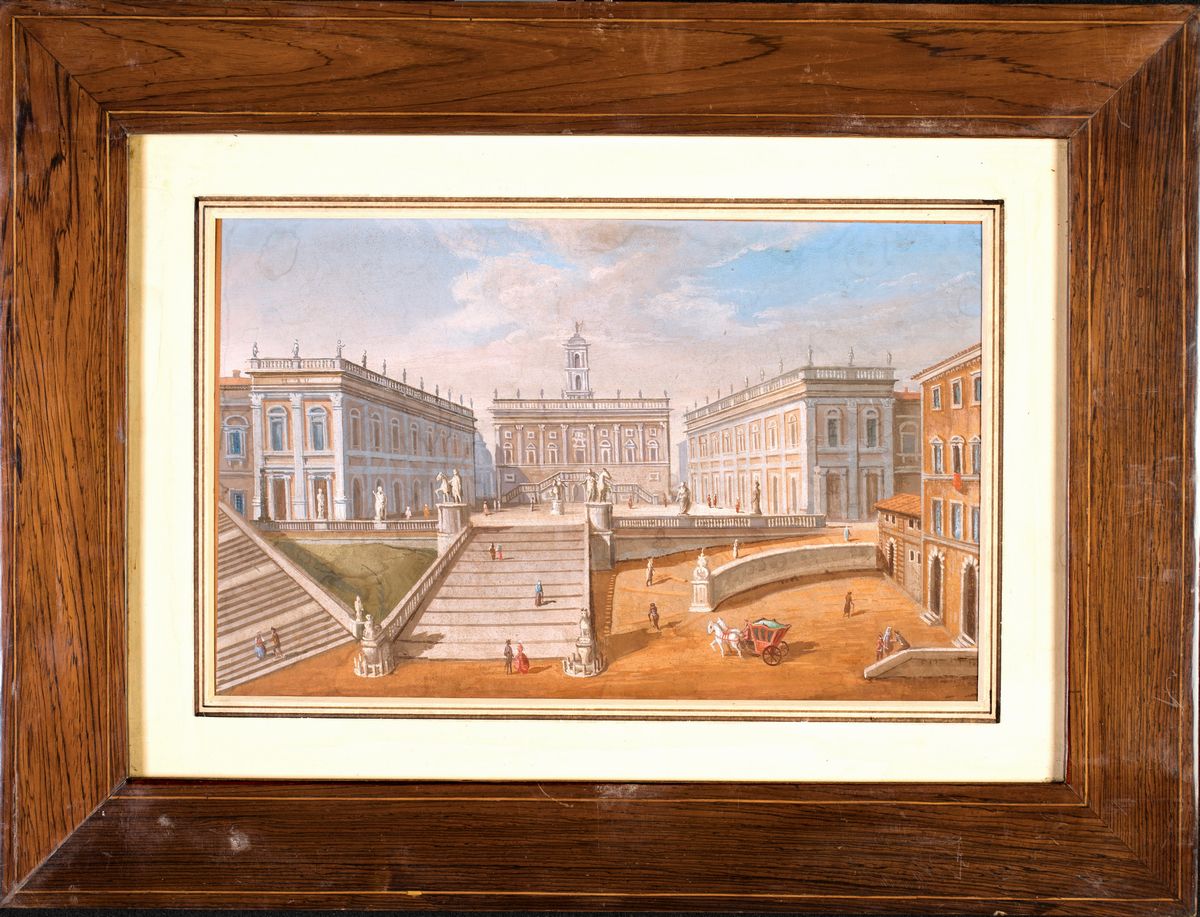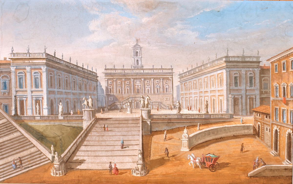 a) Veduta del Campidoglio b) Piazza della Rotonda e il Pantheon con i campanili del Bernini