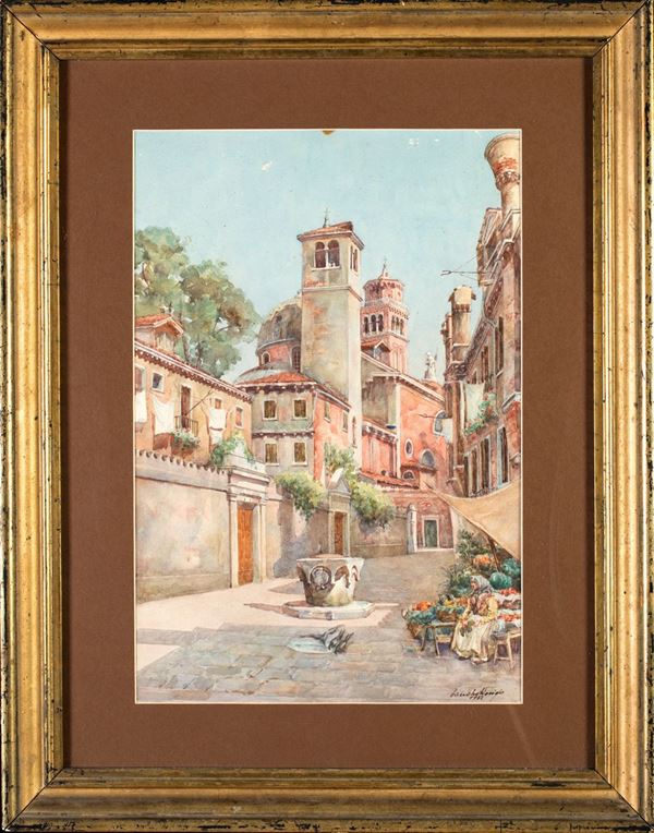 Campiello veneziano con fioraia