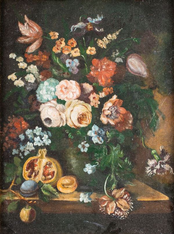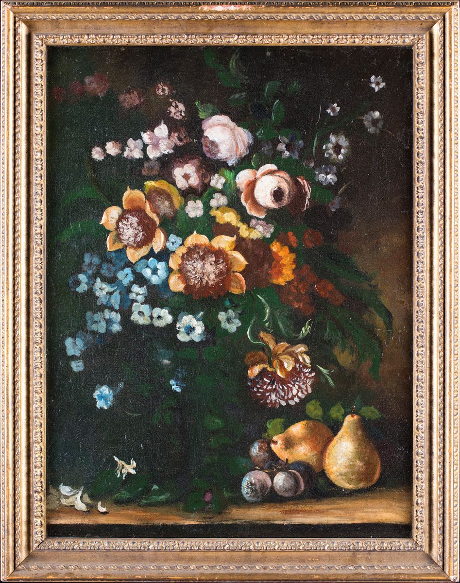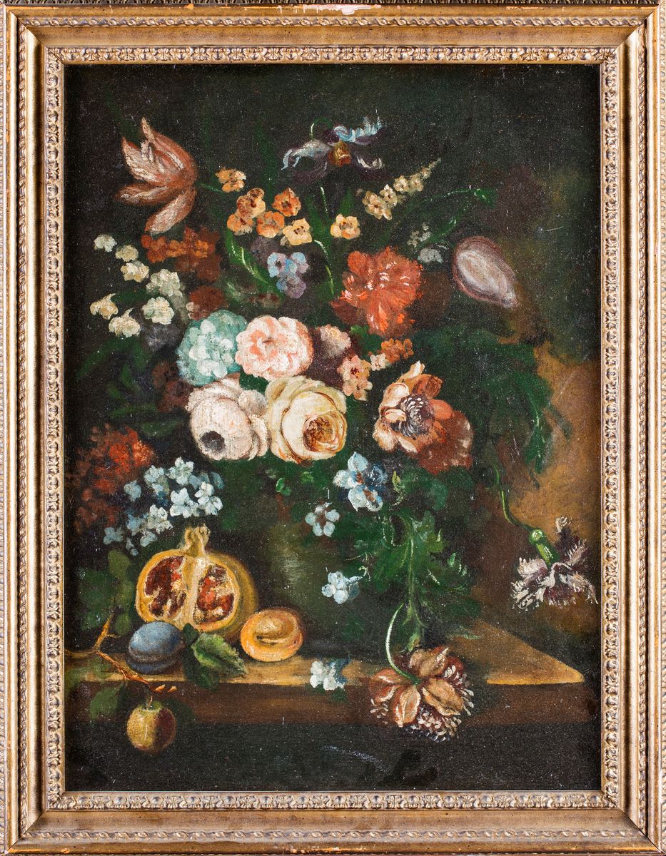 a) Natura morta di fiori e pere b) Natura morta di fiori e melagrane