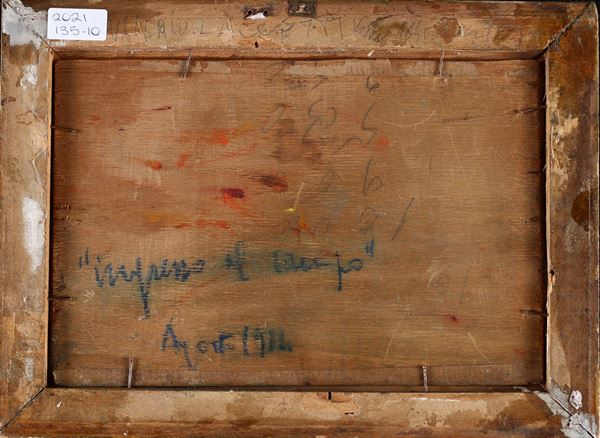 Firmato in basso a destra: Riccardo Pellegrini. Iscritto al verso: Impresso al campo, agosto 1914
