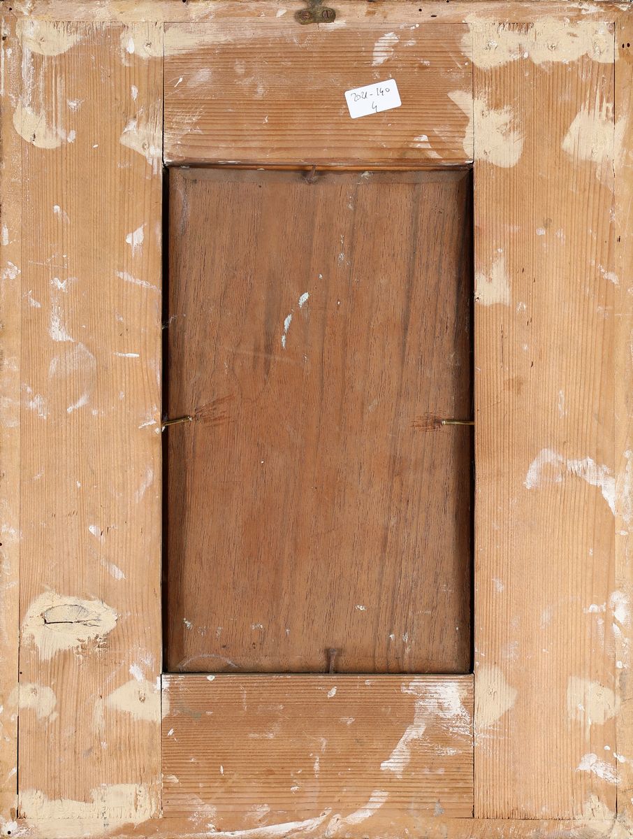 Cornici in legno dorato con fascia percorsa da girali fogliacee su fondo puntinato