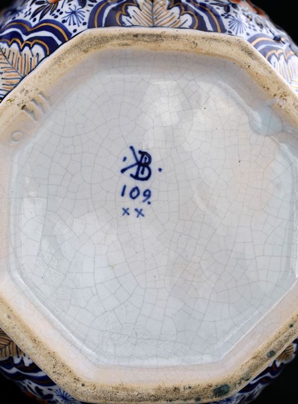 di forma poliedrica con coperchio a cupolino sormontato da cane di Pho, con fitta decorazione a motivi naturalistici di gusto orientale