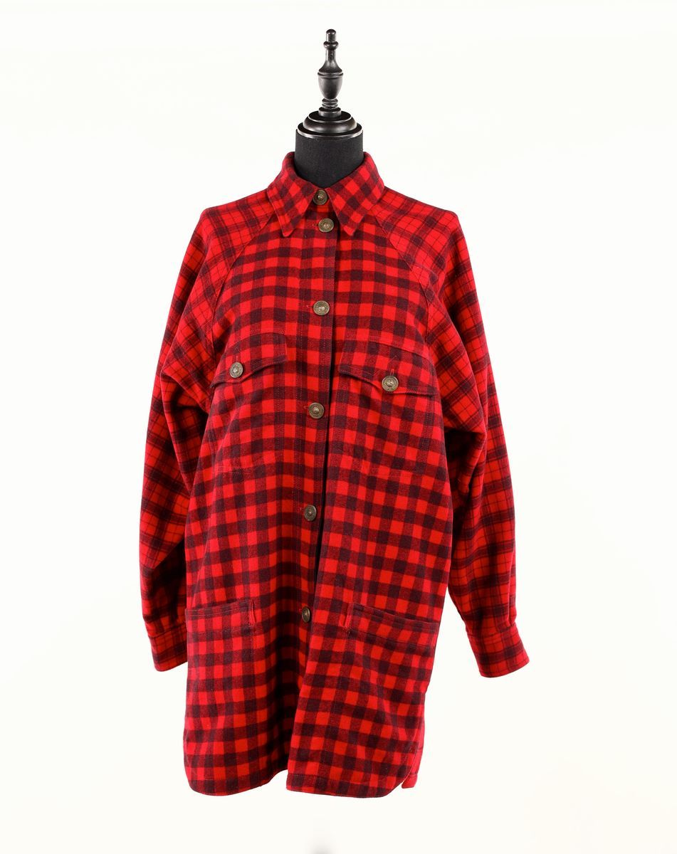 Camicia: 95% lana 5% cachemire. Taglia 40. Manica raglan. Bottoni con logo Versace in rilievo. Spacchi laterali. Polsino con bottone. Fantasie differenti sui toni del rosso e del nero. Ottimo stato di conservazione.