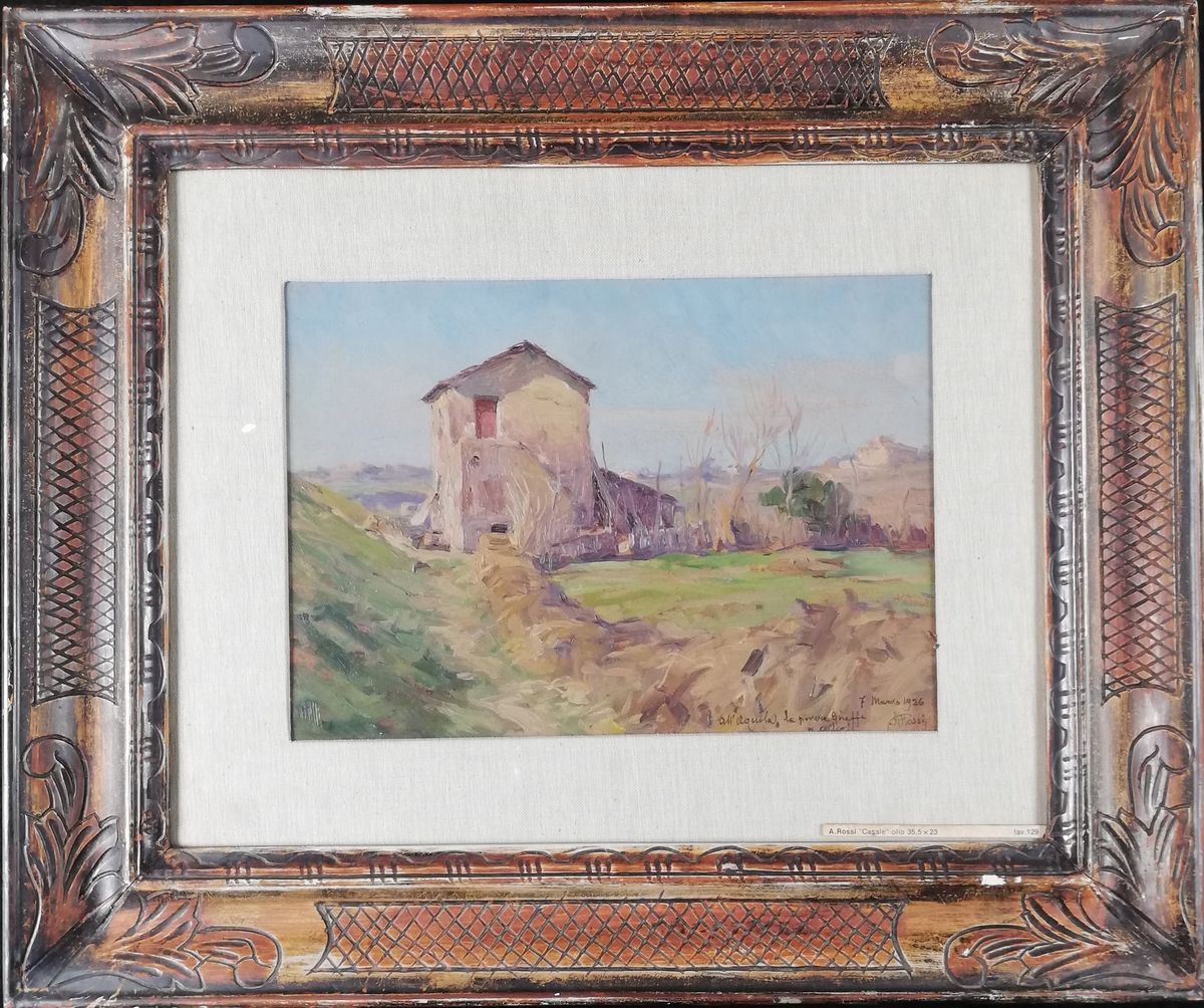 Angelo Rossi è stato uno degli aderenti al gruppo artistico dei XXV della Campagna Romana, una compagnia di artisti italiani diversi per età, provenienza e scuola uniti dalla passione di ritrarre dal vero le figure e i paesaggi della campagna romana, attivo fra il 1904 e il 1930 quando fu sciolto dal regime fascista. Rossi si faceva chiamare "Giraffa", per la sua figura slanciata. La dedica "all'Aquila" iscritta in basso a destra del dipinto, è probabilmente rivolta allo scultore Ettore Ferrari, aderente al gruppo dei XXV, detto "Aquila reale”