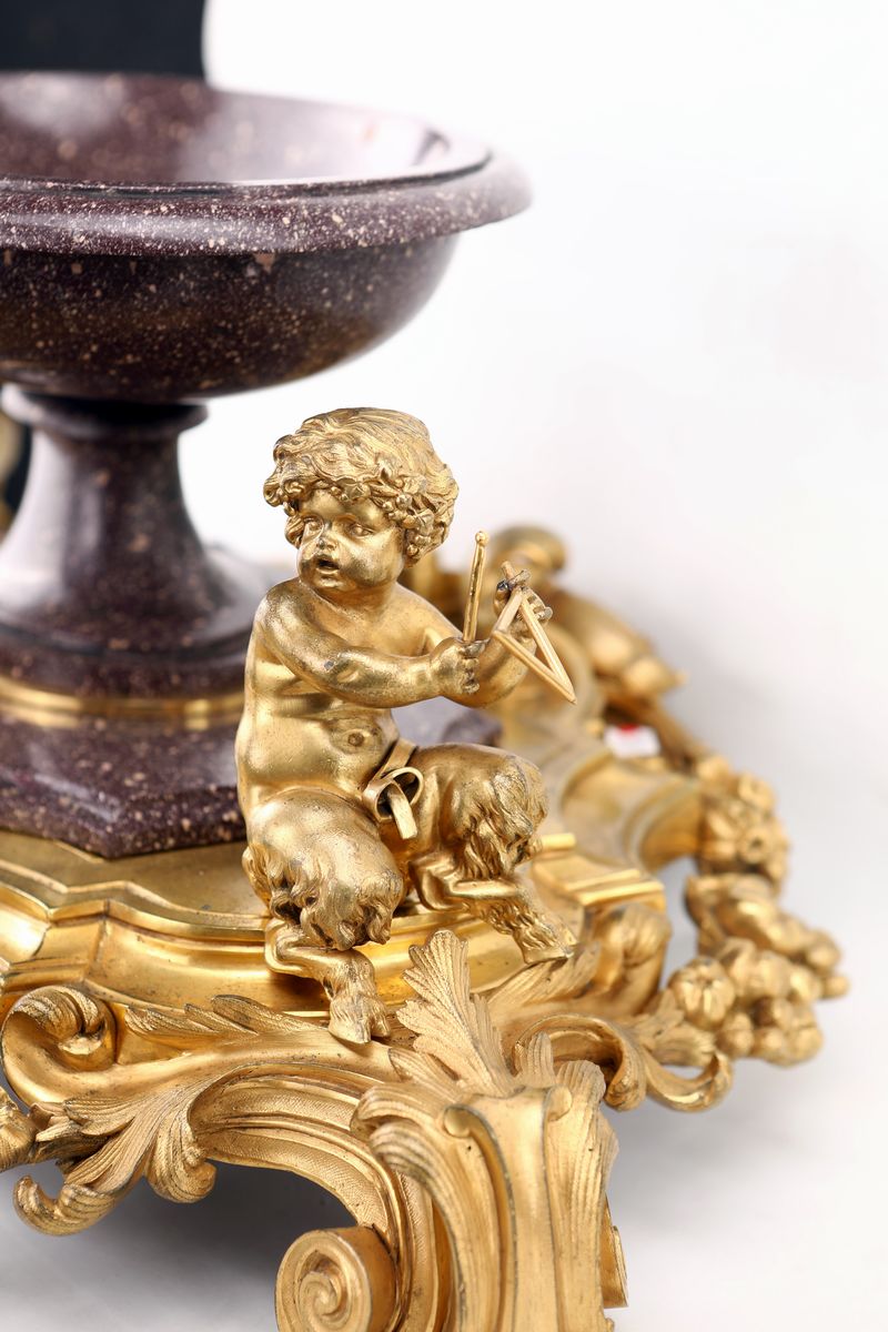 Centrotavola in porfido rosso e bronzo dorato, Francia, XIX secolo