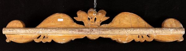 costituito da ampie volute contrapposte con estremità caratterizzate da rosoni; al centro tre frutti