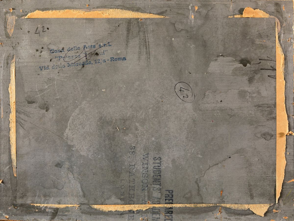 Dedica ad personam, firma e data 1916 in basso a sinistra. Al verso timbro della Casa delle Aste srl, Palazzo Bernini, via della Mercede 12a, Roma