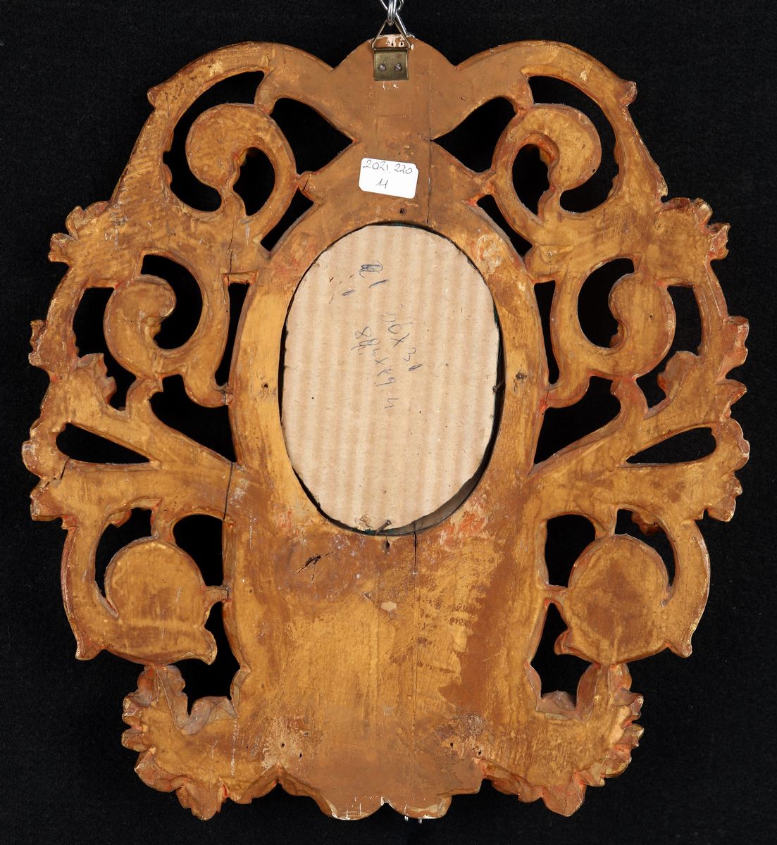 Piccola cornice in legno intagliato e dorato, XVIII secolo
