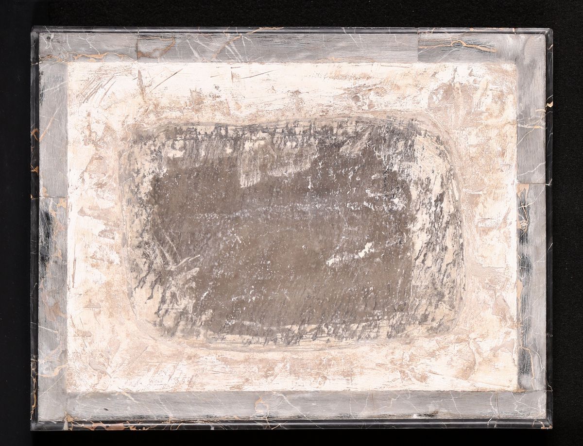 di forma rettangolare a ciglio spiovente con scacchiera in commesso di campionatura di marmi vari